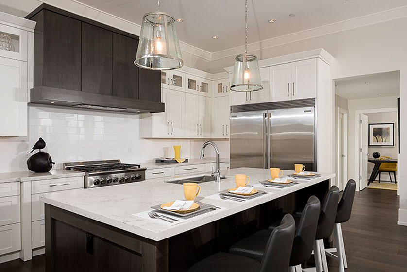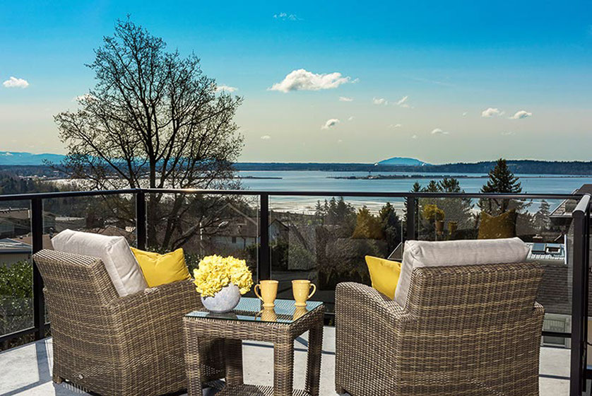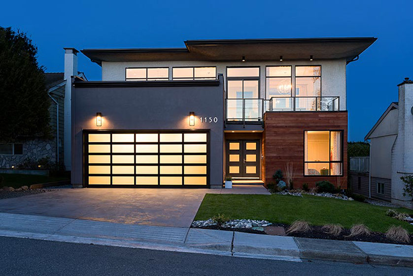 This ocean view hillside home was previously the 2017 Heroes Lottery fundraiser home. It was planned to catch every available view possible. We wanted the Modern style home to be very flexible with a more comfortable transitional style modern interior, plus, great for entertaining with all the outdoor decks. We also wanted to highlight the rear yard/garden which so many of these style homes neglect. It features top floor living and entertainment. We experimented with ceiling heights in this home; the top floor boasts 11'-0" high ceilings.